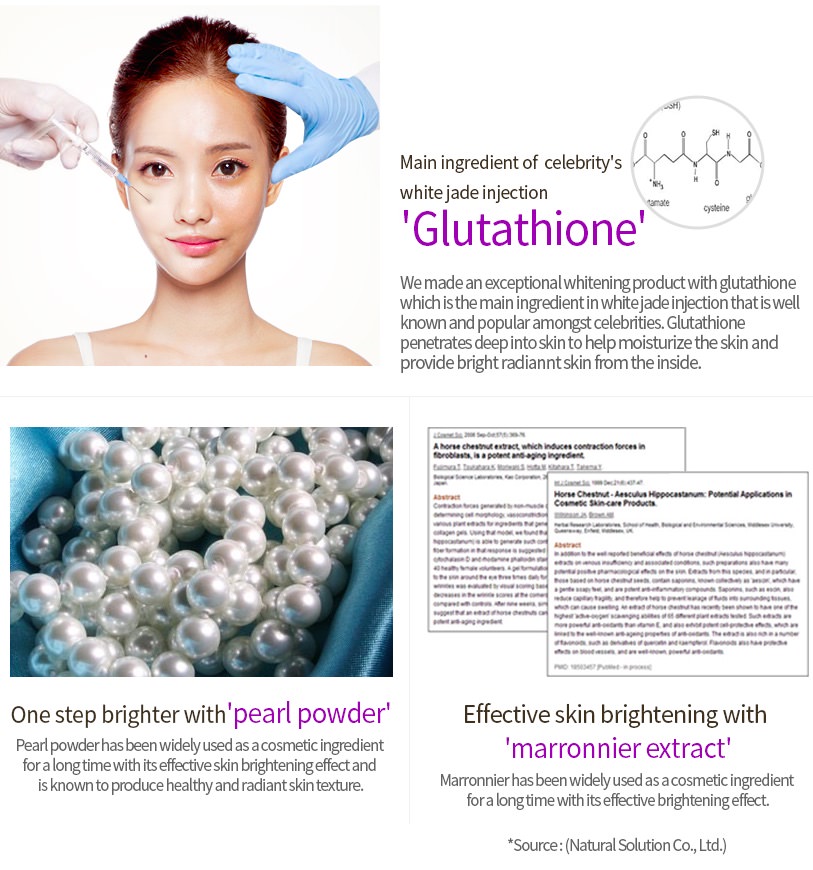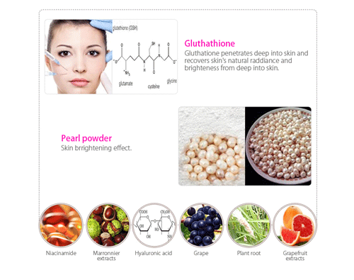 – Glutathione: Khi dưỡng chất này thẩm thấu sâu vào da sẽ giúp cho da được dưỡng ẩm và tăng cường độ trắng da từ bên trong.